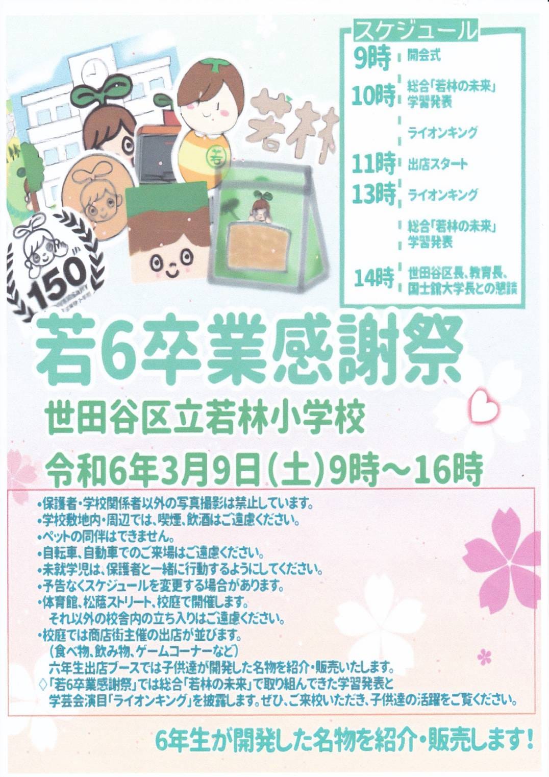 9日、若林小学校6年生卒業感謝祭が9時から16時にかけて開催。 初めての取り組みとして、本日行われた感謝祭に参加させて頂きました。 ミュージカルライオンキングは、短い練習だったと思いますが、素晴らしい舞台でした。 卒業後は、私立に進学する児童も地元の仲間といい思い出となったことでしょう。 お疲れ様でした。