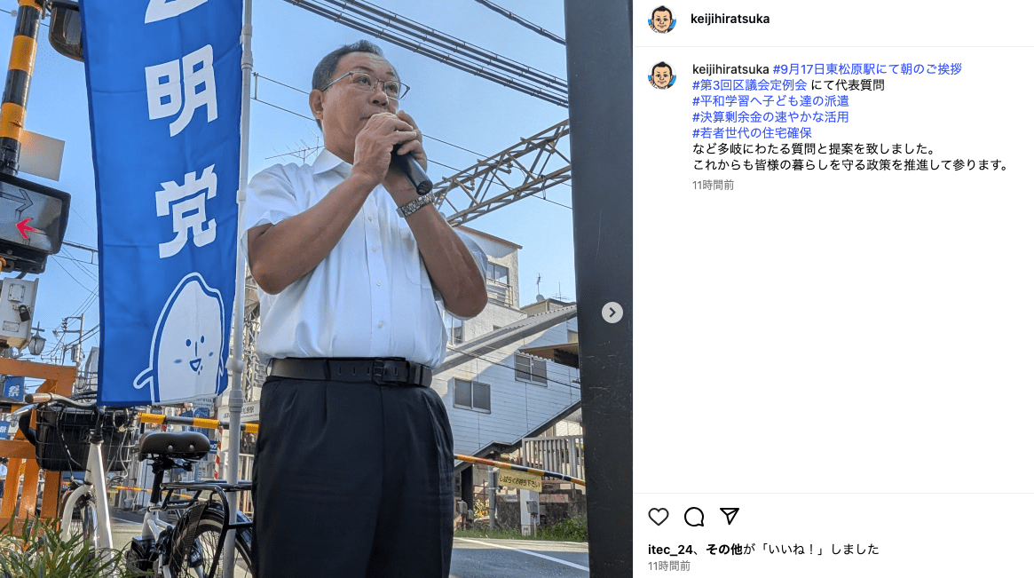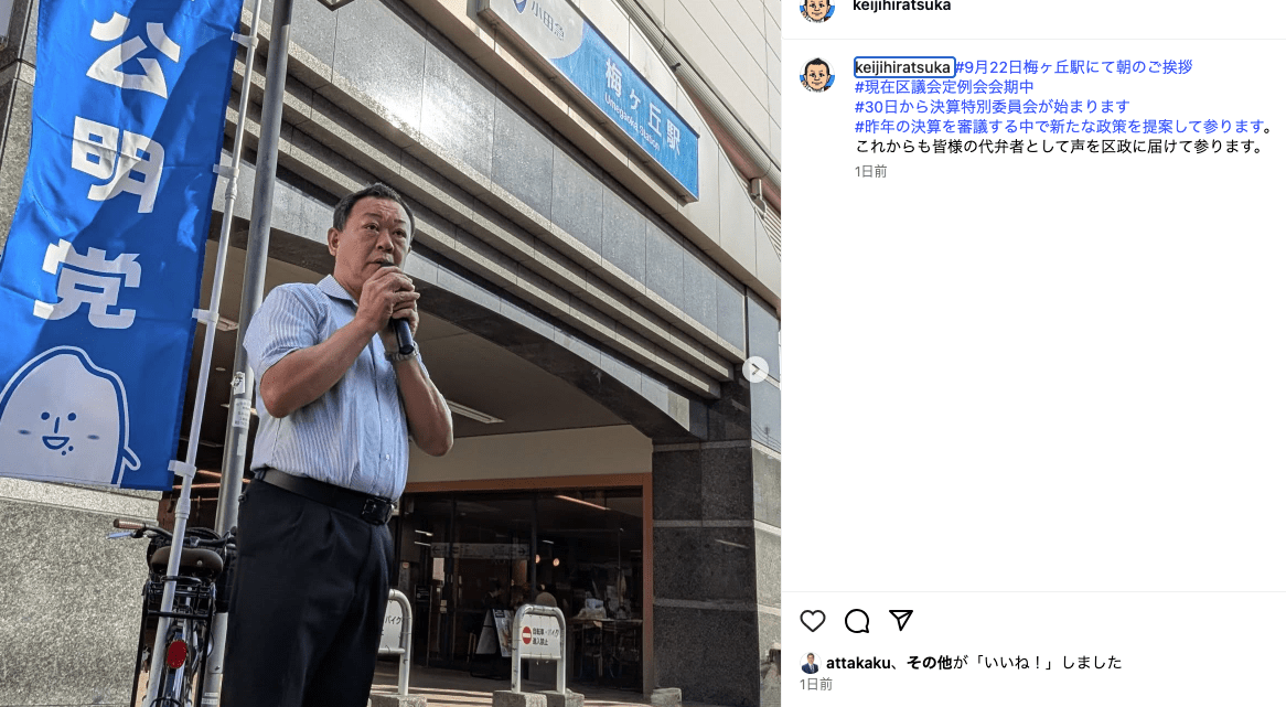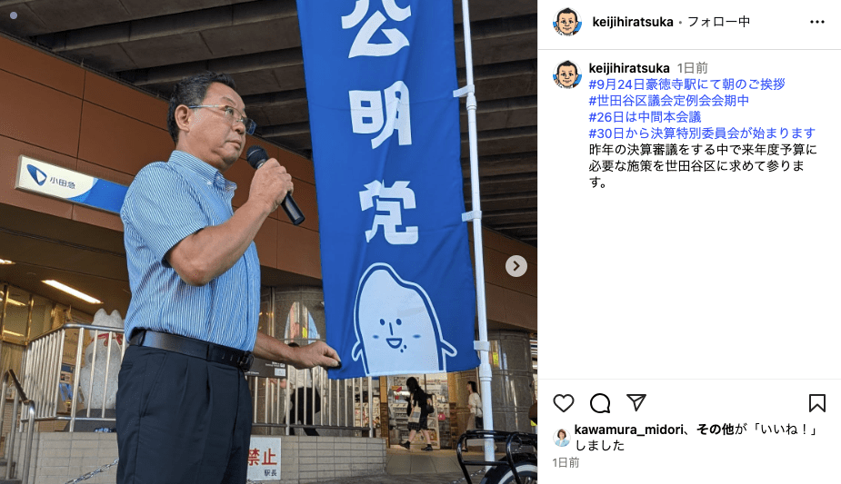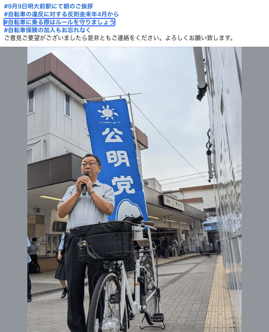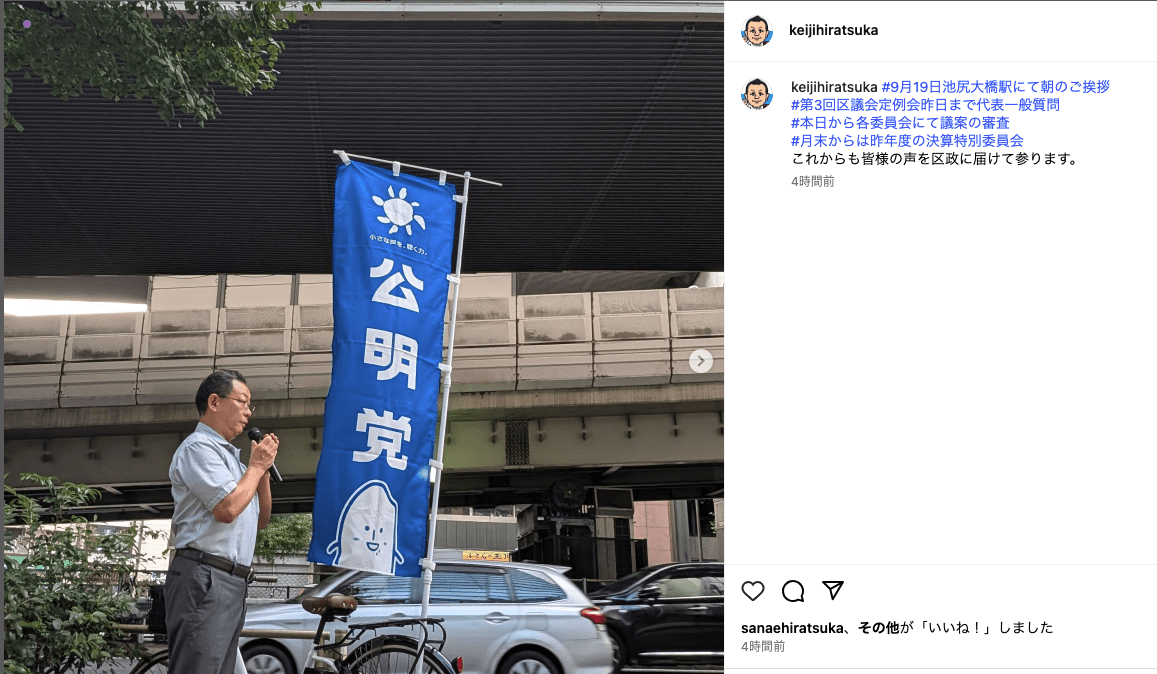 ご挨拶では、平和学習へ子どもたちの派遣や、若者世代の住宅確保など多岐に渡る提案を令和7年世田谷区議会第3回定例会で公明党区議団から代表質問でさせていただいた事を報告。