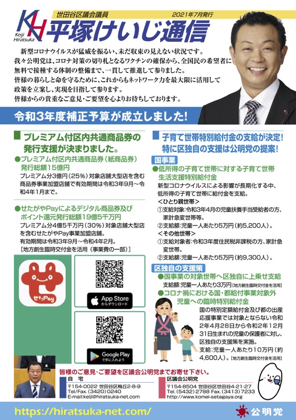 区政報告平塚けいじ通信2021年7月号が発行されました。